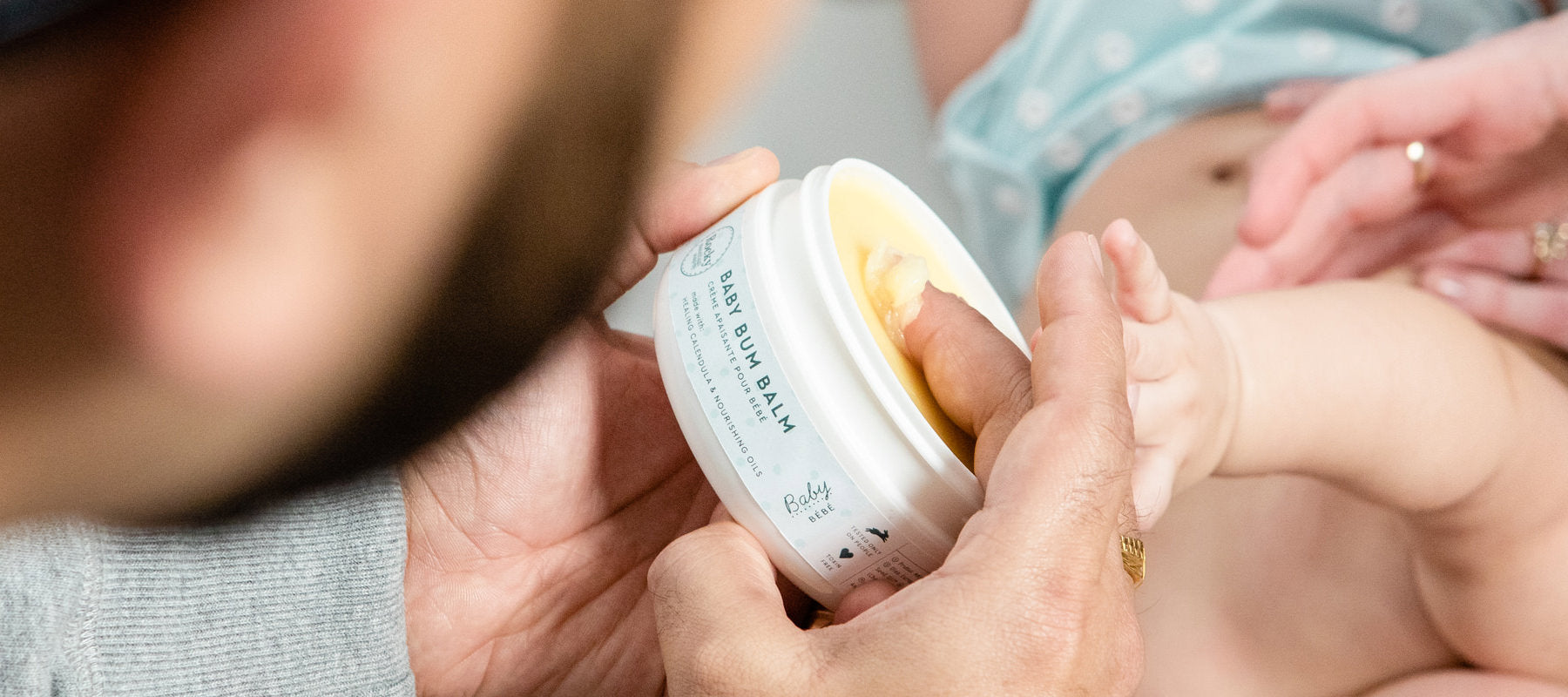 Avoiding harsh chemicals that dry out the skin and artificial fragrances are a great preventative measure. The Baby Bum Balm is a favourite amongst the Rocky community has been known to help prevent rashes (not just on the tush), soothe cradle cap and dry skin. It is petroleum-free and works for cloth diapers as well.