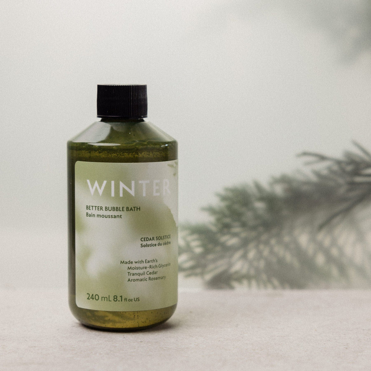 A delicate bubble bath in our limited-edition Winter scent. Cedar Solstice is inspired by the forest, blending the rich, tranquil aromas of cedarwood with the fresh, aromatic notes of rosemary.