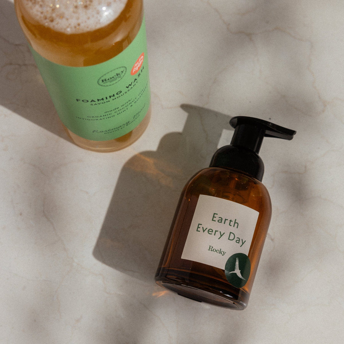 Fill it up with your favourite natural Rocky Foaming Wash knowing it’ll look beautiful beside your bathroom sink, shower or kitchen counter. Plus, you can feel good knowing you’re keeping extra single-use plastics out of the landfill. Pairs well with any of our 1L Foaming Washes so you can keep your Forever Bottle topped up as you go.