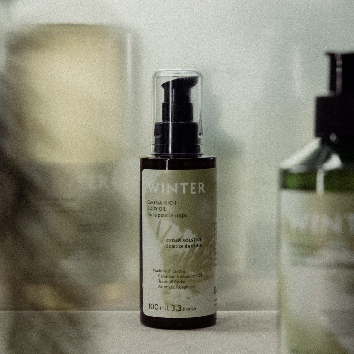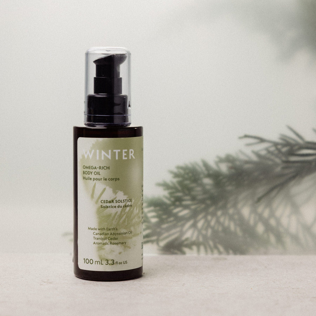 A moisturizing body oil in our limited-edition Winter scent. Cedar Solstice is inspired by the forest, blending the rich, tranquil aromas of cedarwood with the fresh, aromatic notes of rosemary.