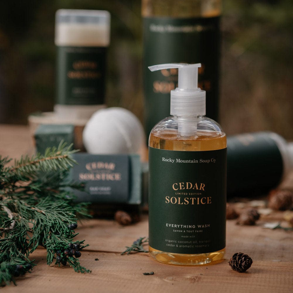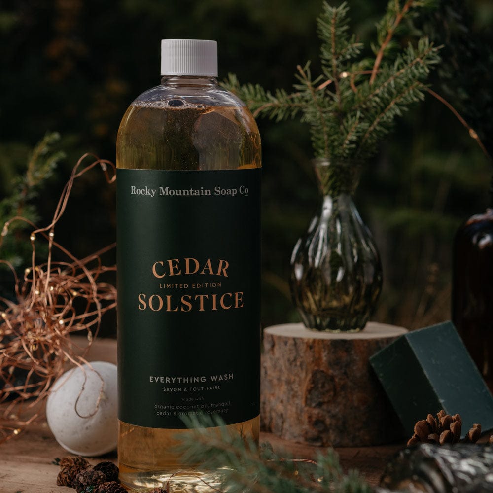 A gentle, velvety-smooth liquid Castile soap in our limited-edition Winter scent. Cedar Solstice is inspired by the forest, blending the rich, tranquil aromas of cedarwood with the fresh, aromatic notes of rosemary.