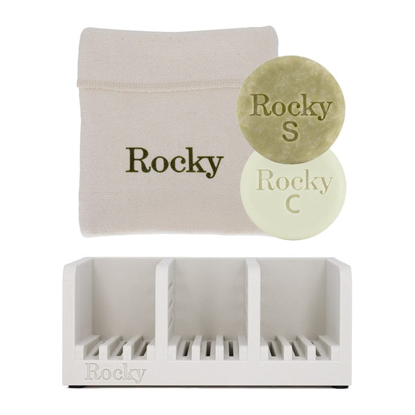 Cleanse, condition, and organize with our Hair Complete Bundle. This Canadian-made set includes solid shampoo and conditioner bars crafted with natural ingredients, a practical shower shelf, and a breathable travel pouch.