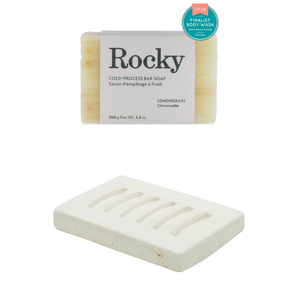 • Display your bar soap in style with our thoughtfully designed bundle, featuring our bestselling Lemongrass Bar Soap and handcrafted soap dish.