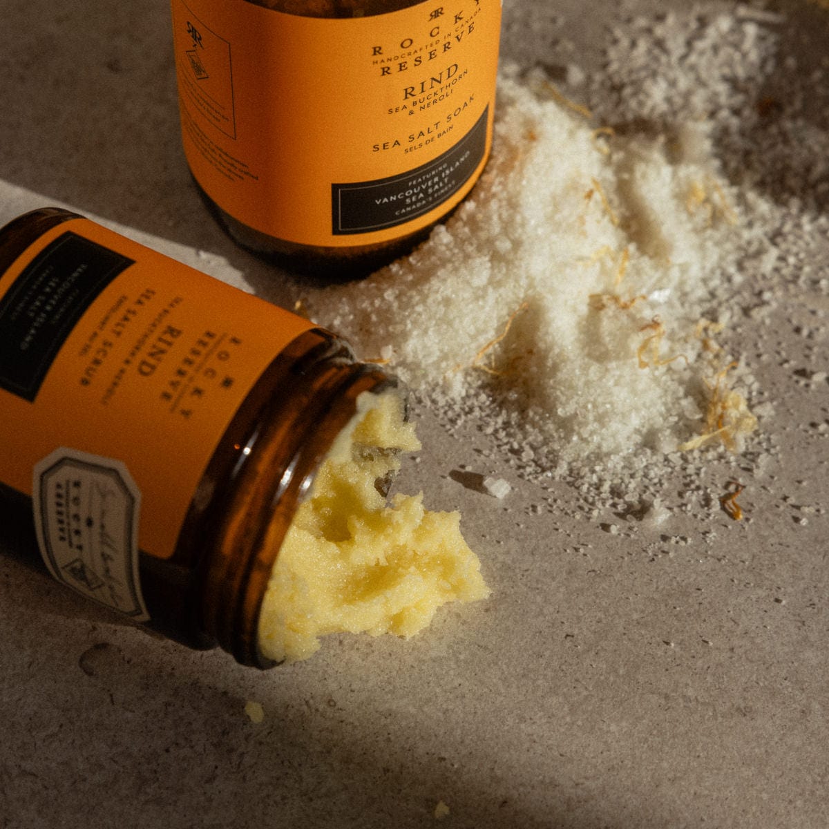 Introducing Rocky Reserve Sea Salt Scrub—an exfoliating body scrub made with mineral-rich Canadian sea salt hand-harvested by Vancouver Island Sea Salt.