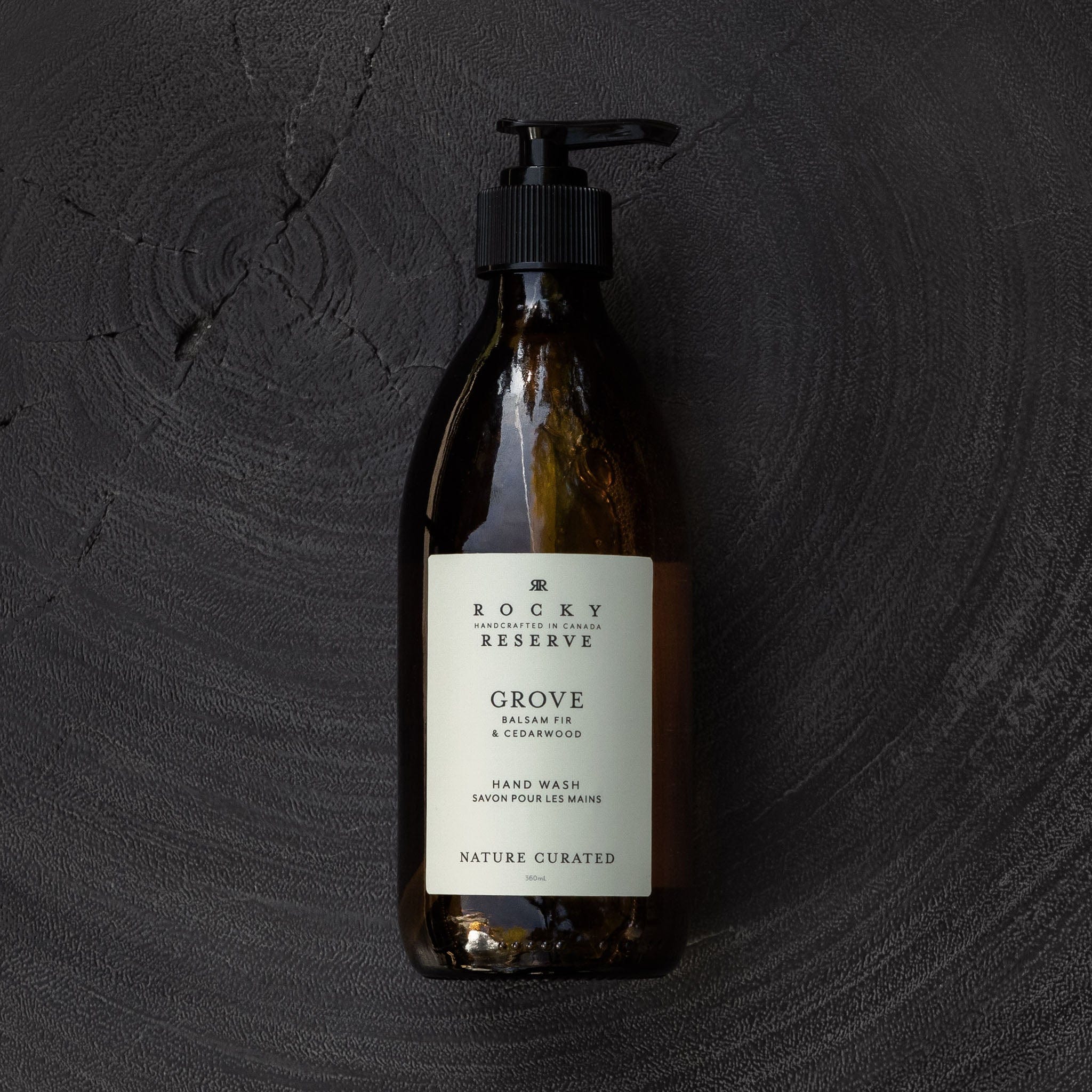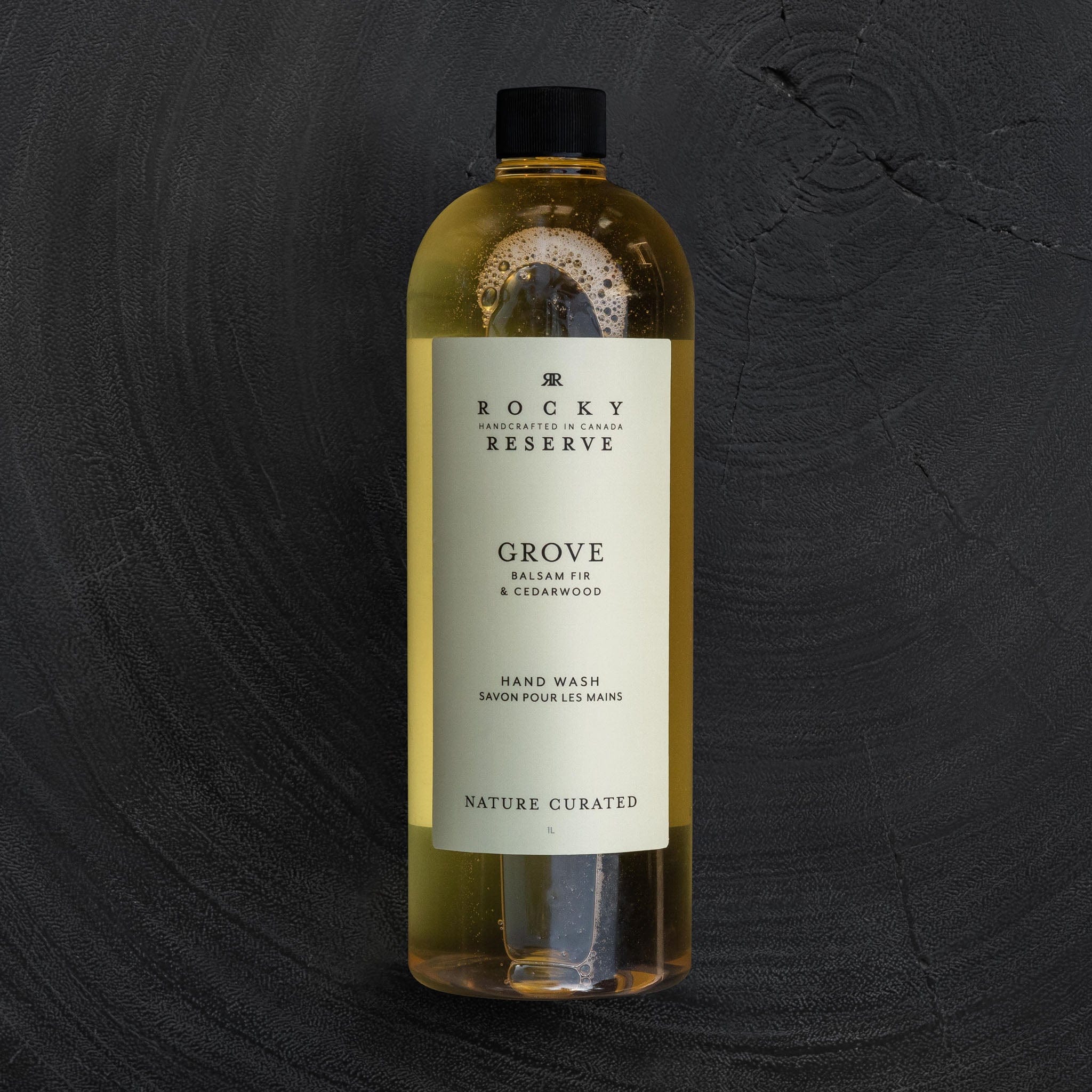 Our Rocky Reserve collection is presented in sophisticated, reusable amber glass bottles. Our 1L refill bottle and cap are made from 100% post-consumer recycled (PCR) plastic—which helps reduces single-use waste and is designed to use to refill your glass bottles again and again.
