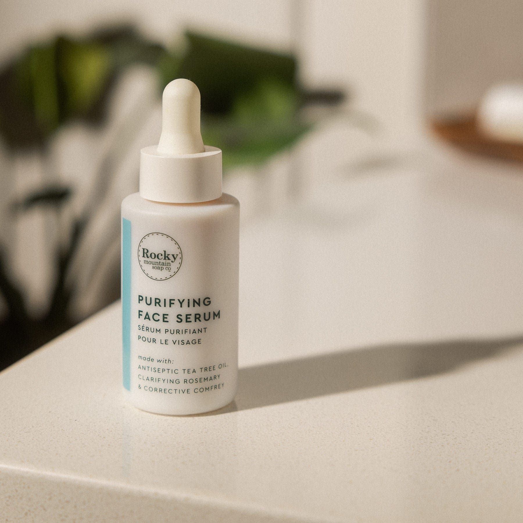 This serum was designed to calm blemish-prone skin. We formulated it with a potent blend of cleansing tea tree oil with antioxidant- and omega-rich sea buckthorn oil, which soothes and nourishes for a smoother, clearer appearance.