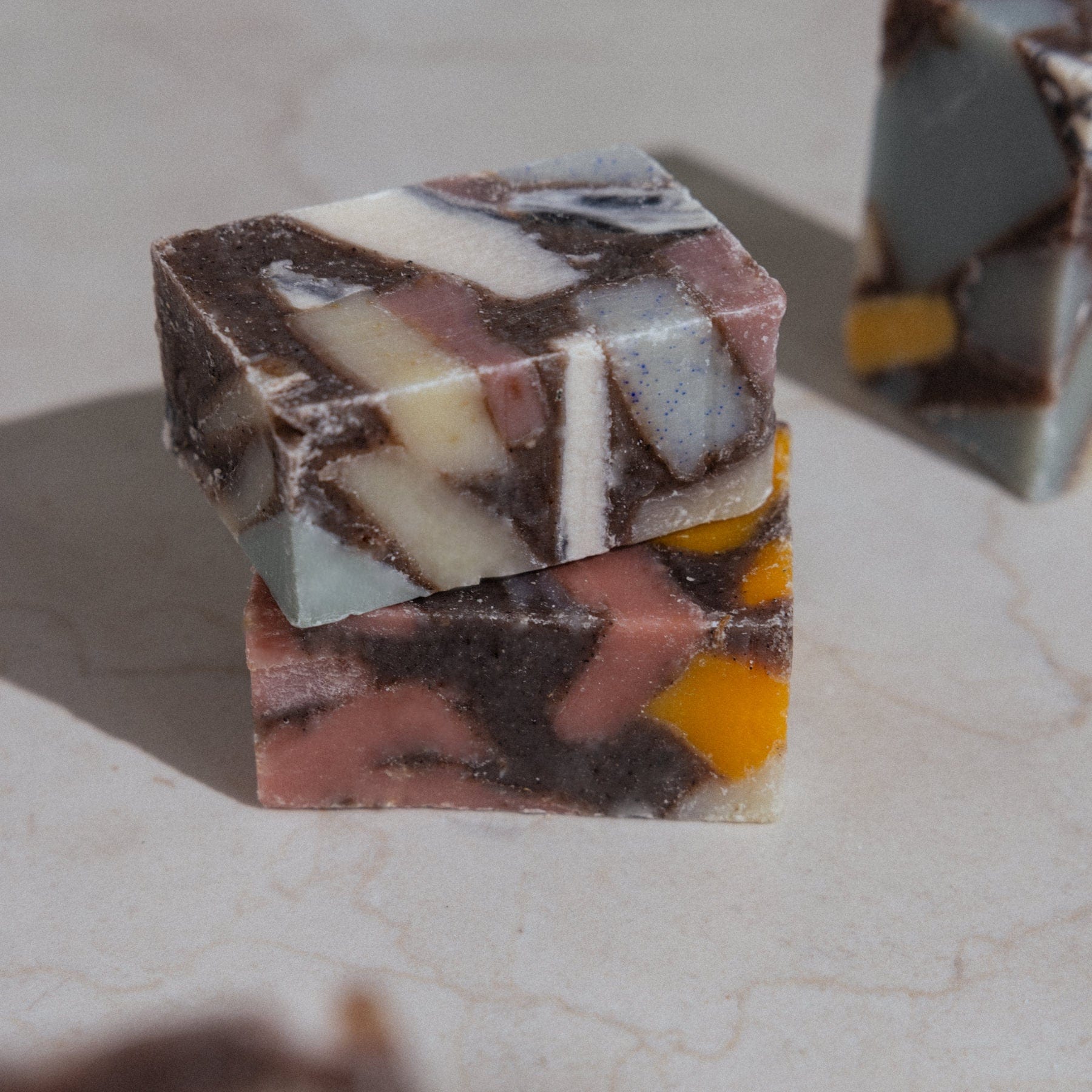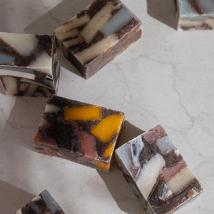 • This bar is one of a kind—literally. Each batch is made from off-cuts of our other soap eliminating production waste, which means it looks different every time you buy it. Yet, you can always count on that invigorating minty feel and hydration with every wash. Why? Spearmint essential oil soothes the senses while moisture-rich shea butter keeps your skin soft. Plus, ratanjot powder gently smooths away dry skin. So, reach for this eco-friendly, uniquely patterned soap the next time you lather up.